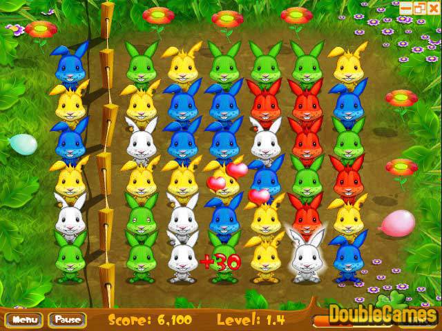 De konijnen verzamelen zich in Bunny Bounce Valley voor hun jaarlijkse reünie, en jij bent ook uitgenodigd! Stuiter de konijnen in groepen van drie of meer dezelfde en ze springen blij weg. Race tegen de klok of neem je tijd in drie verschillende game modes. Plus speciale gasten als Bunny the Kid en Captain Carrot zijn een leuke aanwinst voor je online-fotoalbum! Met meer dan 70 levels, schattige beelden en uren verslavend plezier zit je met Bunny Bounce Deluxe uren springend achter je scherm. En wie had er nou ook weer worteltjestaart gebakken?