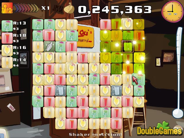 Cocktail Manie is een vastpakkend stel-3 spel dat u passende verschillende bestanddelen heeft om naar uw klanten te dienen. Maak deze smakelijke cocktail en alstublieft uw bezoekers om hoge uitslagen te krijgen! U begint uw carrière aan een strandbar om uw vaardigheden te verbeteren. Probeer hard en u zult verder uw werk aan een van de stijlvolle stadclub kunnen gaan. Heb een mooie stel-3 ervaring in Cocktail Manie! Krijg een vrij downloadt spel op onze plaats en u zult een kans te genieten van deze unieke vooruitgangen, bonussen en combo hebben!
