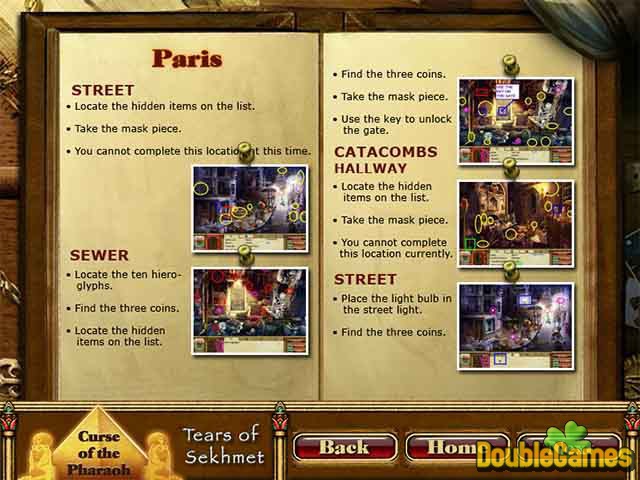 Maak een opwekkende reis rond de wereld met Anna en de Professor om de zeven Tranen van Sekhmet te vinden! U bent Anna te helpen om de omstandigheden van Napolean`s instorting te ontdekken. Uw doel is niet alleen hoofdkunstvoorwerpen te verzamelen om Nefertiti`s kwelling te beëindigen, maar behalve hen. Als haar stepbrother gretig zal de macht naar zijn voordeel te draaien! Bovendien met onze Strategie Gids zult u een kans hebben om uw avontuur te maken boeien meer en opwinden! Onze behulpzame sleutels, screenshots en aanwijzing verhuren u om sommige vage punten in dit Verborgen voorwerpspel op te helderen!