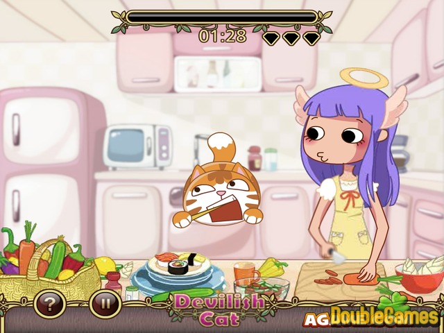 Een hongerige en ondeugende kat ging naar de keuken om wat smakelijk eten te pakken! Voed dit schattige dier vele soorten van voedsel terwijl zijn eigenares bezig is met het drinken van thee en over de telefoon praten in het nieuwe hilarische spel Devilish Cat! Wees attent en snel, probeer niet gepakt te worden en let op de tijd. Passeer al de levels één voor één en krijg toegang tot nieuwe smakelijke gerechten. Oh, en vergeet het niet om de diamanten te pakken. Schiet o pen begin met het spelen van Devilish Cat nu meteen voor niets. Veel plezier is gegarandeerd. Succes!