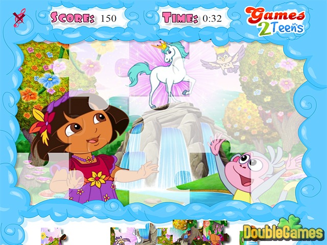 Het nieuwe stimulerende en boeiende Jigsaw spel genaamd Dora the Explorer: Jolly Jigsaw is op jou aan het wachten. Als jij een fan bent van deze prachtige tekenfilm serie over de nieuwschierige en charmante meid Dora, stort je dan op het oplossen van dit stimulerende Puzzel spel. Geniet van de prachtige foto's van deze boeiende tekenfilm en zet de stukken van de foto's samen. Gebruik je verstand en wees snel genoeg, want er is een tijdslimiet. Begin met het spelen van het geweldige online spel Dora the Explorer: Jolly Jigsaw nu meteen voor helemaal niets.