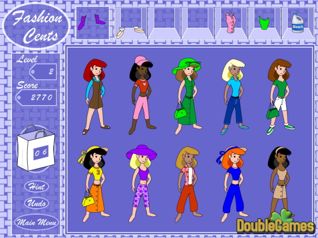 Stel u uzelf voor als een pop-stilist in dit grappige moderaadselspel! Poging om honderden slimme kleren te creëren. Ook kunt u uw uitrustingen met glazen of handtassen wijzigen om bonuspunten te scoren. De succesrijkste beelden u kan op de planken aan het hoofd van het scherm plaatsen. Krijg genoegen uit het spelen van dit schattige spel en maak genoeg kleren om naar de volgende niveaus te krijgen!