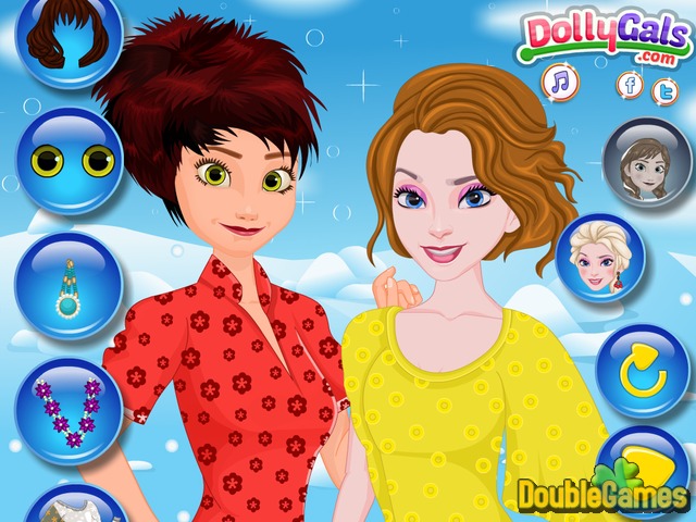 Als prinses Anna ging naar de Barbie's huis als een kerstman te geven haar een Gift van Kerstmis, Queen Elsa plaatste een verrassingsgeschenk voor Anna. Toen ze het huis bereikte werd ze onder de indruk van het geschenk, want het is een gloednieuwe Smartphone van Elsa. Anna wil haar eerst selfie nemen met haar mooie zuster Elsa. Maar ze uw hulp in dressing up nodig. Je kunt ze aankleden met de beste jurken die geschikt zijn voor de selfie en doe een prachtige make-over voor hen. Speel Frozen selfie MakeUp nu gratis!