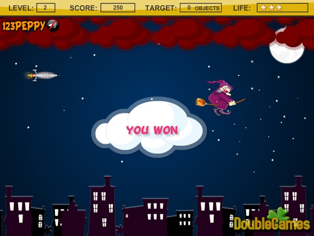 Tijdens Halloween besloot de heks om haar nieuwe bezem te testen! Wil jij dit samen met haar doen? Vlieg met deze dame rond in het nieuwe vermakelijke arcade spel Hallooween Flying Witch! Wees er zeker van dat je ook verschillende objecten vangt die uit de lucht komen vallen en vermijd de obstakels. Als je wat raakt zul je een leven kwijtraken en moet je weer vanaf het begin beginnen. Je moet al de levels overkomen om er zeker van te zijn dat de nieuwe bezem van de heks perfect is en dat ze het altijd kan gebruiken om mee te vliegen. Speel het spel Hallooween Flying Witch nu meteen, het is gratis. Veel plezier!