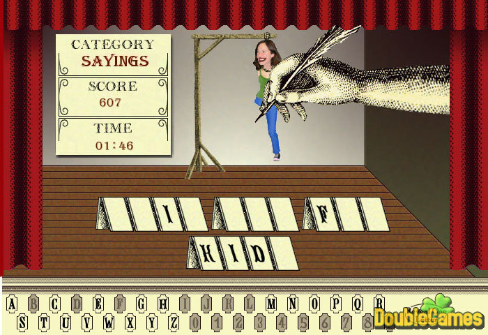 Indien u van een populaire klassieke spel Beul houdt, zal de spel Hangmania zeker uw hart winnen! Het is een interessante versie van een klassiek spel. Vul alle woorden in, maar wees heel aandachtig en maak veel fout niet. Indien u te vele brieven verkeerd krijgt, zal uw teken aan de galg worden gehangen! Wees zo wreed en poging niet fout niet te maken. Sommige zinsneden kunnen bevatten nummers en alle woordzinsneden zijn voor moeilijkheid gesorteerd. Speel deze mooie spel Hangmania net nu!