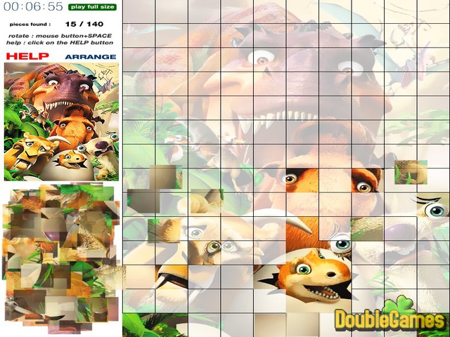 Ontmoet je favoriete helden Manny, Sid en Diego in het nieuwe spel Ice Age 3 Puzzle. Stop alle kleine stukjes op de juiste plaats om zo een foto van de wereldberoemde film te krijgen. Denk jij dat het een makkelijke taak is? De items zijn heel klein en in overvloed hierzo. Dus wees er klaar voor om goed je best te doen om zo nog een episode van deze prachtige film te zien. Test je beste puzzel vaardigheden en heb veel plezier met het spelen van dit gratis online spel, Ice Age 3 Puzzle!