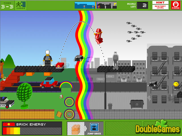 Help de LEGO Broers om de machten van verveling te strijden en om een beetje van kleur rug naar hun grijze, grijze wereld te brengen. Controleer de wereld rond hen door het plaatsen van LEGO van bakstenen te vergewissen zich ervan dat onze helden stappen in zwarte inkt en verwoesten van hun weg processen niet afhandelen! Drie verschillende modi van gameplay zullen u op uw tenen bijhouden als u de bewegingen van Harry in actie-ingepakte Achtervolging niveau controleer, hulp Jens los gecompliceerd Raadsel niveau op en stimuleer in Groep modus! LEGO biedt Koorts een kleurrijke uitdaging voor iedere speler aan!
