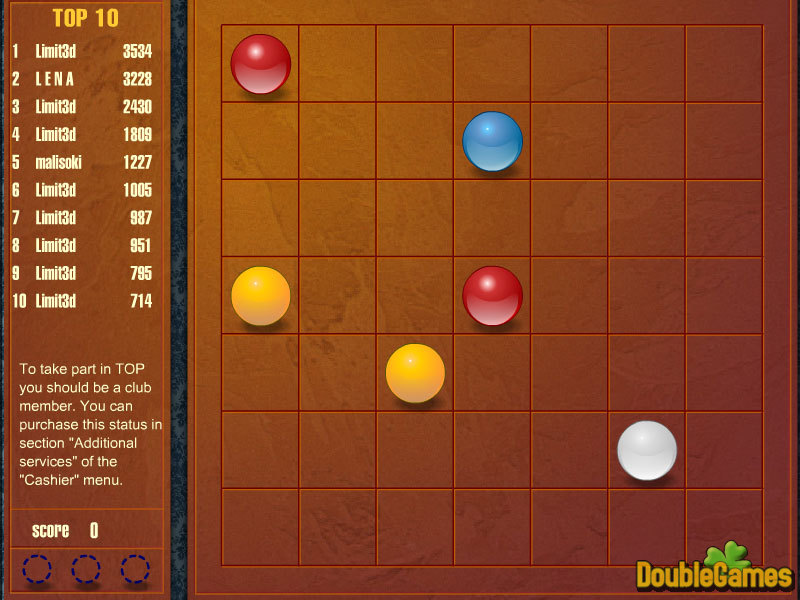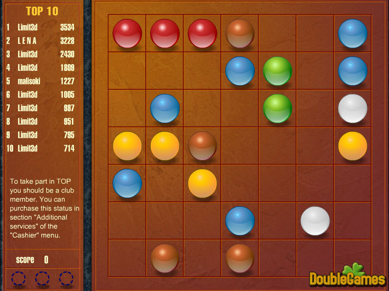Lijnen zijn een populair en goed bekend spel. De versie van het spel stelde op onze plaats omvat enkele verschillen en toevoegingen voor die het spel aantrekkelijker en opwinden maken. Het doel van het spel is de ballen van de raad te elimineren; het langere het neemt het betere als dit scoren meer punten toestaat. De speleinden wanneer er geen wettelijke bewegingen zijn. Zo indien u dit spel voor hebt niet gespeeld, is het uw kans om het nu te doen. Geniet zo van het spel!