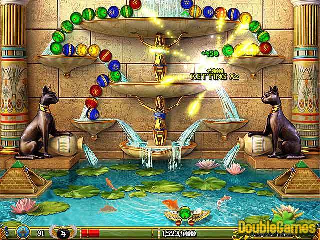 Maak je borst maar nat en zet je zicht op scherp want de gekleurde bollen vallen Egypte weer aan in Luxor 5th Passage, een spel boordevol actie! Gebruik je scarabee-schieter en knal de kettingen van gekleurde bollen aan gort voordat ze de piramides vernietigen. Verdien allerlei trofeeën en titels terwijl je de vallende edelstenen en schatten opvangt. Gebruik je bonuskrachten wijselijk om zo door alle levels te knallen en Egypte te redden van de ondergang!