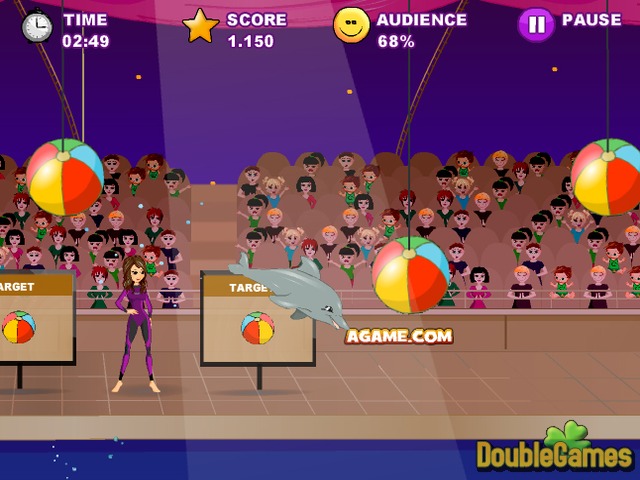 Doe je best en win de harten van het publiek in het nieuwe vermakelijke en uitdagende spel My Dolphin Show! Jij bent de eigenaar van de schattige en getalenteerde dolfijnen en het is nu tijd om hun talenten te demonstreren. Laat de beste vaardigheden en trucs zien, laat ze jouw bevelen volgen. Het publiek is op iets speciaals aan het wachten, dus laat verpest het niet. Als het publiek je optreden niets aan vind - zul je verliezen. Speel My Dolphin Show nu voor helemaal niets en laat iedereen zien hoe geweldig jouw dolfijnen zijn!