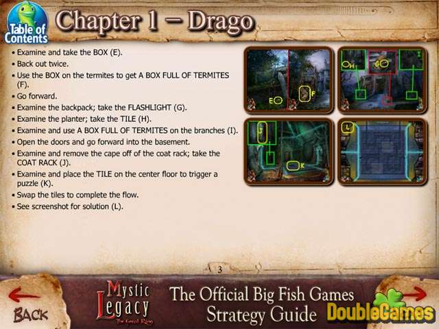 De puzzels van het nieuwe spookachtige maar heel vermakende Hidden Object spel Mystic Legacy: The Great Ring zijn niet zo makkelijk en je moet redelijk wat inspanning leveren om al de geheimen te onthullen en achter de waarheid te komen! Als je deze uitdaging wil oplossen, dan heb je misschien de hulp van Mystic Legacy: The Great Ring Strategy Guide nodig! Hier zul je vele tups en trucs vinden die je helpen met waar je naartoe moet en wat je moet doen. De grot kleurrijke foto's zullen je avontuur aangenamer maken. Haal Mystic Legacy: The Great Ring Strategy Guide voor niets! Haal het einde van het spel!