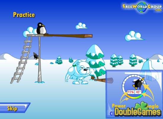 Pinguïn is een grappig spel met een mooie grafieken en geluiden. Het is vertoningen dat er verschillende wegen u is kunt plezier met een pinguïn hebben en stelt niet alleen kwaliteitskeuze voor maar ook verschillende soortdoelen u zou moeten slaan. U kunt de tegenoverstaand beer met een schattige kleine pinguïn doden: u moet goed mikken en selecteert de juiste hoeveelheid van aandrijf slechts zo dat de pinguïn de beer slaat. Het neemt enkele slagen om de beer te doden (poging om naar het hoofd te streven - resulteert in de geweldigste inslag). U kunt de Ballons knallen: poging om de rechte hoek uit te werken en macht te moest knallen alle ballons in een vlucht zetten. U kunt door de betrouwbare pinguïns schieten: Gebruik hen om een doel in de sneeuw te slaan. U wordt meer punten toegekend indien uw pinguïn hoger vliegt en slaat het midden van het doel. Geniet van dit prachtige spel en profiteer van de plaatselijke pinguïns! Waarvoor anders is zij goed?