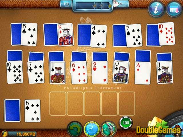 Koninklijke Vloed Solitair is een uniek oversteekplaatsspel dat onderdelen van poker en solitair combineert. Geniet van een gameplay ervaring die verschillend van bekende solitairspelen is. Om van een niveaus naar het volgende vooruitgaan, moeten spelers alle kaarten van de raad door het bouwen van pokerhanden opklaren, zoals een paar, volledig huis, vier van een soort of een koninklijke vloed.