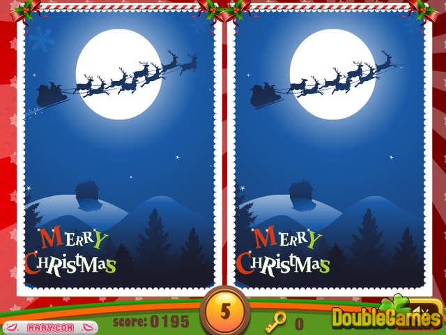 Vind de verschillend in dit Kerst spel waar de Kerstman in speelt. Een nieuwe Kerst flash spel Santa Claus - Find the Differences vraagt jou om twee Nieuwjaars kaarten te vergelijken, die op het eerste gezicht identiek lijken. Het spel heeft drie levels: makkelijk, normaal en moeilijk. Het is niet makkelijk om ze te voltooien - dit spel heeft geen hints! Vind de verschillen tussen de afbeeldingen en probeer een maximale score te halen! Opel al de Kerst kaarten in het gratis online flash spel Santa Claus - Find the Differences.
