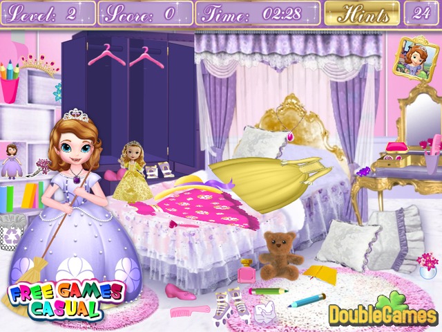 Gisteren had prinses Sofia een geweldig feest waar het hele koninkrijk voor was uitgenodigd en iedereen had veel plezier. Nu is het kasteel een puinhoop en moet jij het schoonmaken. Help Sofia en doet het samen in dit nieuwe uitdagende en hele interessante online Time Management avontuur genaamd Sofia Party CleanUp! Kijk eens naar al deze troep. Ruim alles op, zet al de items op hun plek en laat alle kamers er weer schoon en mooi uitzien. Je kunt nu Sofia Party CleanUp beginnen te spelen, het is gratis, bereid het kasteel voor op nieuwe feestjes!