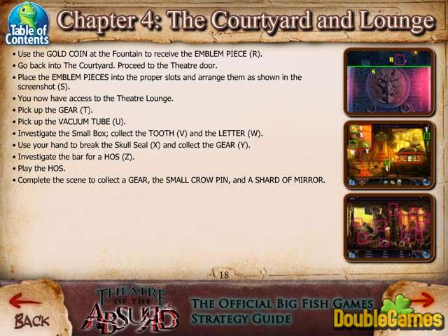 Het nieuwe, boeiende Hidden Object spel Theatre of the Absurd zit vol met uitdagende en lastige puzzels. Om ze op te lossen heb je wat hulp nodig, dat is waarom je absoluut Theatre of the Absurd Strategy Guide moet downloaden! De fantastische beschrijvingen die worden weergegeven op de grote en kleurrijke foto's zullen je laten zien wat je moet doen en waar je vervolgens naar toe moet gaan. Duidelijke instructies, bruikbare tips en trucs van deze gids zullen je uitleggen hoe je de scenes moet passeren om naar het einde van dit spel te komen. Download Theatre of the Absurd Strategy Guide voor niets, geniet er van en succes met het spel!