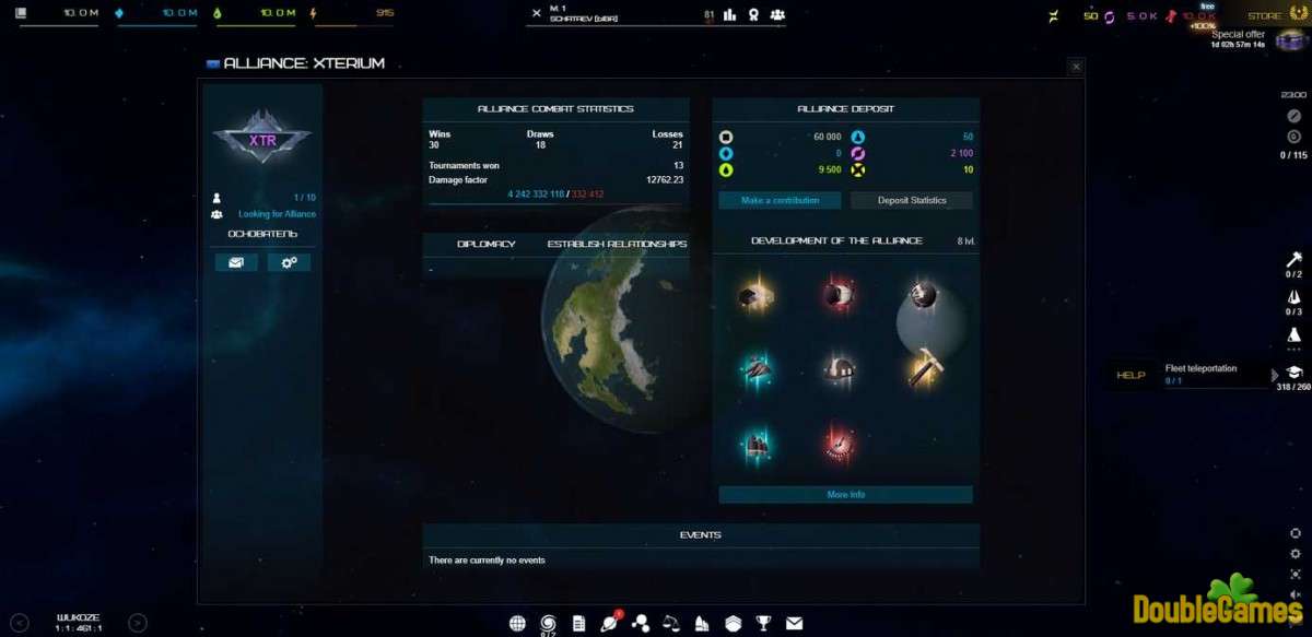 Xterium War of Alliances - is een strategiespel dat zich afspeelt in de ruimte, met duizenden spelers van over de hele wereld die tegelijkertijd strijden. Je hebt alleen een gewone webbrowser nodig om te spelen. Xterium is een browser-gebaseerd, online-browserspel voor geldbeheer en een ruimteoorlog-thema. Je begint met slechts één onontwikkelde wereld en verandert die in een machtig rijk dat je zuurverdiende koloniën kan verdedigen. Creëer een economische en militaire infrastructuur om je zoektocht naar de volgende grootste technologische prestaties te ondersteunen. Heb je genoeg moed om deel te nemen aan grote veldslagen, het onbekende te verkennen en je eigen rijk op te bouwen? Stort je nu in een onbeperkt sciencefiction-universum: ga op pad om de ruimte en zijn onontgonnen landen te veroveren, koloniseer vele planeten om je rijk uit te breiden en je macht te vergroten, ontwikkel je technologieën en gebouwen, vorm je eigen leger en je ruimtevloot om de strijdkrachten van je vijanden met je bondgenoten of alleen. Denk je dat je je ideologie, je wetten kunt opleggen? Sluit je aan bij de reeds geregistreerde spelers die op je wachten om te vechten! Bouw je rijk - Bouw logistieke, productie- en militaire structuren om de sterke punten van je land te versterken en zwakke punten te verminderen. Je vermogen om mankracht en energie te oogsten, de drie primaire bronnen van het spel, zijn cruciaal voor succes. Bezoek je buren - Neem je vloot van schepen mee om de andere planeten in de melkweg te bezoeken. Je kunt de ruïnes delven, allianties vormen of ze aanvallen en plunderen wat je kunt. Wees gewaarschuwd - ze kunnen jou ook aanvallen! Strength In Numbers - Sluit je aan bij clans met andere kolonisten. Een verenigde kracht is moeilijk te overwinnen; een verdeelde is eenvoud. Speel zoals je wilt - Word je een jager en ga je op zoek naar gevaarlijke wezens en onbekende plaatsen? Een mijnwerker, op zoek naar de zeldzaamste bronnen en componenten? Van PvP tot handelen tot verkenning, elke activiteit in Xterium is lonend - in meer dan één opzicht! Bijna onbeperkte vooruitgang - Elke vijand die je verslaat, biedt ervaring die je helpt groeien. Versla golf na golf van vijanden, neem het op tegen de baas en claim een legendarische buit. Er is altijd meer te doen en contracten af te ronden. Planet Customization – Met een breed scala aan actieve en passieve anomalieën kun je je planeet vormgeven terwijl je vordert en je op jouw manier laten spelen. Vecht om te overleven - Strijd om in leven te blijven in de vijandige sector. hier is elke planeet anders, met zijn eigen uitdagingen en gevaren. Donkere materie en arsenalen zijn zeldzaam - wees voorbereid! Speciale evenementen – Xterium organiseert van tijd tot tijd de speciale evenementen/competities, waarbij de speler een geweldige kans heeft om speciale beloningen en bonussen te winnen. Gratis te spelen – Xterium is, net als veel van de huidige strategiespellen, gratis te spelen. Spelers kunnen echter betalen voor voordeel, zoals het omzeilen van timers en het verkrijgen van extra functies.